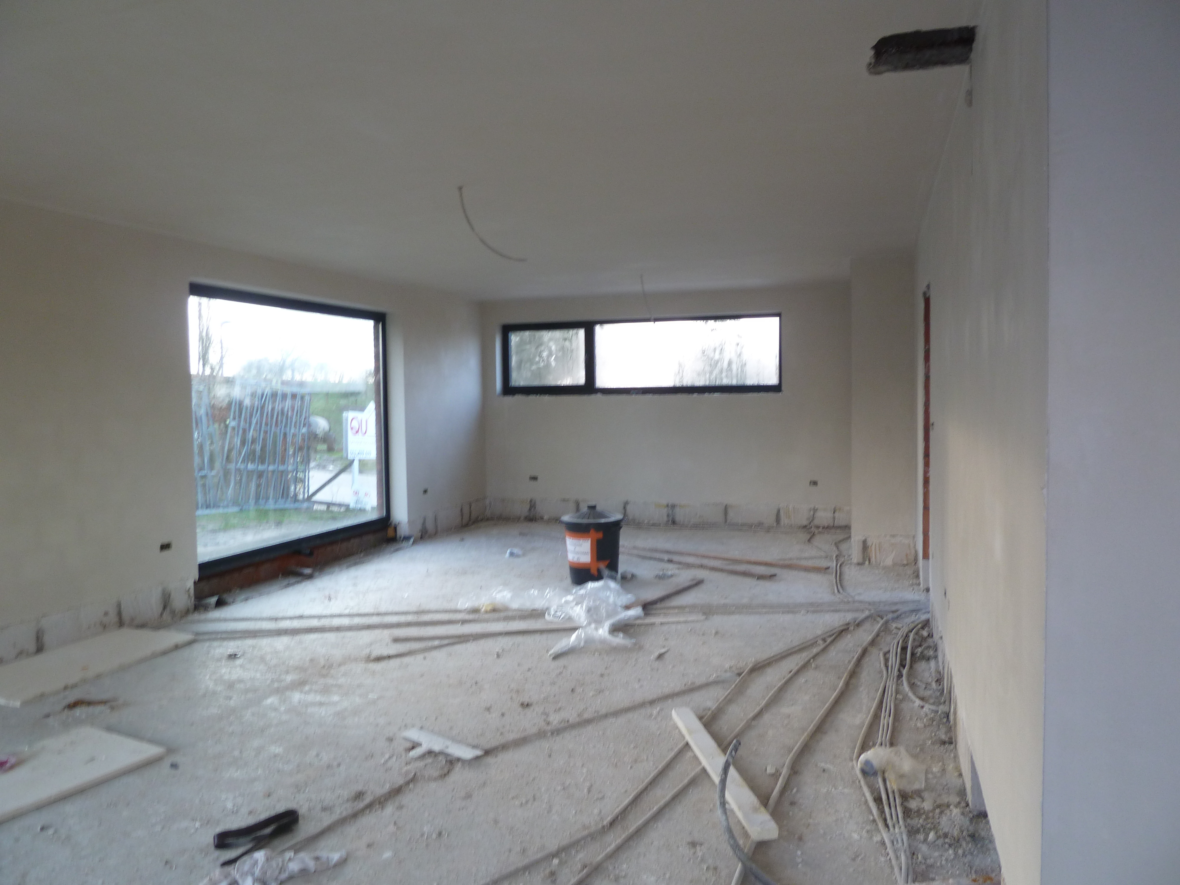 De aansluitingsband van de luchtdichting ter hoogte van de zijkant van de buitendeur moet mee ingepleisterd worden.