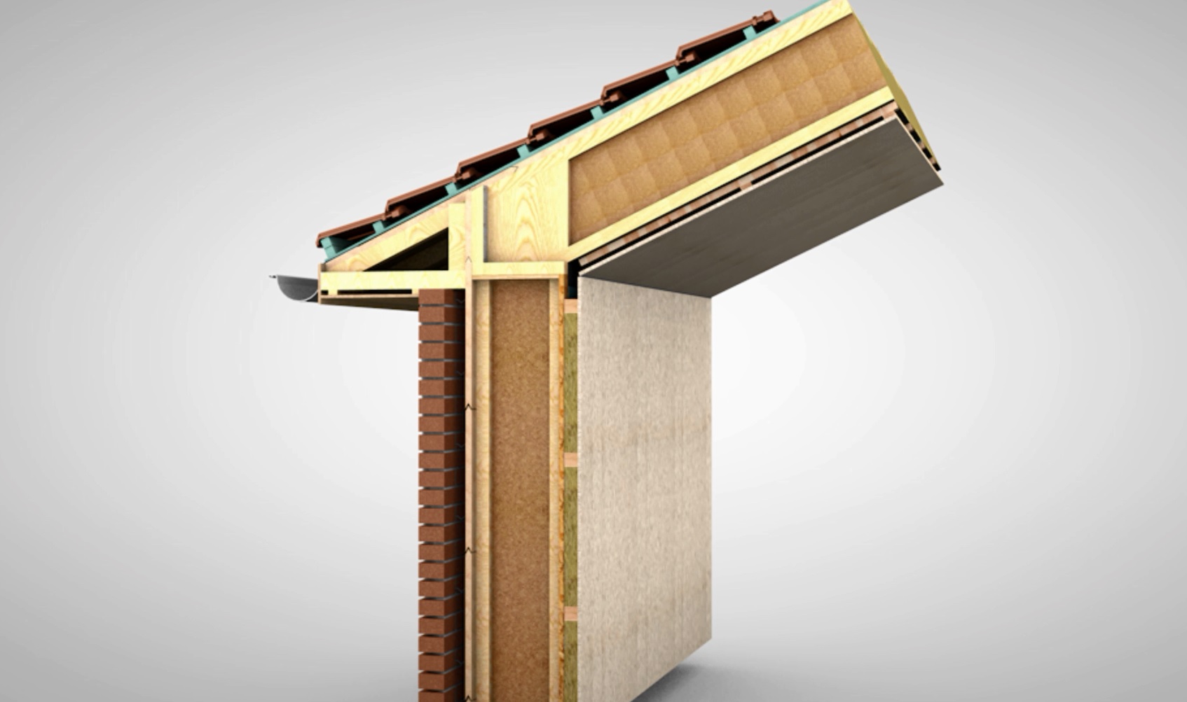 Aansluiting hellend dak met houtskeletwand